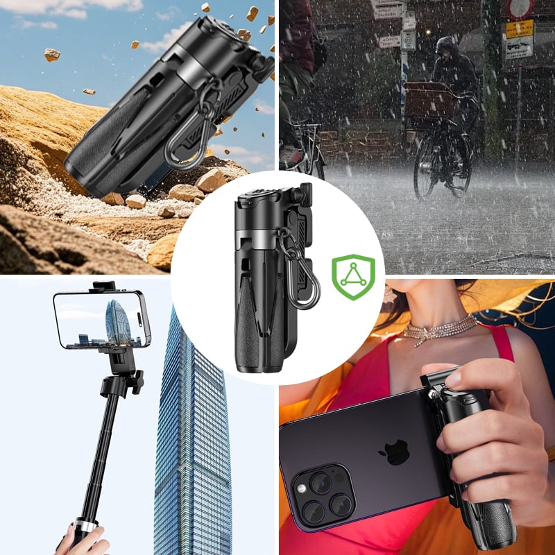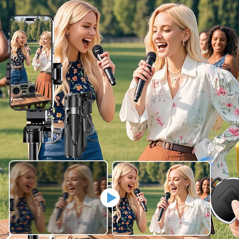 Sub-Ăberschrift: All-in-One Lösung mit professionellem Licht, StabilitĂ€t und magischem Halt. Perfekt fĂŒr Reisen, Vlogging und den tĂ€glichen Gebrauch.
