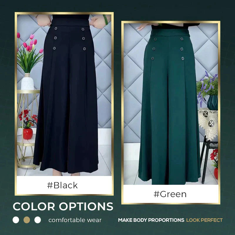 Eine Hose mit weitem Bein löst das Problem von Elefantenbeinen und anderen Beinfehlern und lässt Ihre Körperproportionen perfekt aussehen!