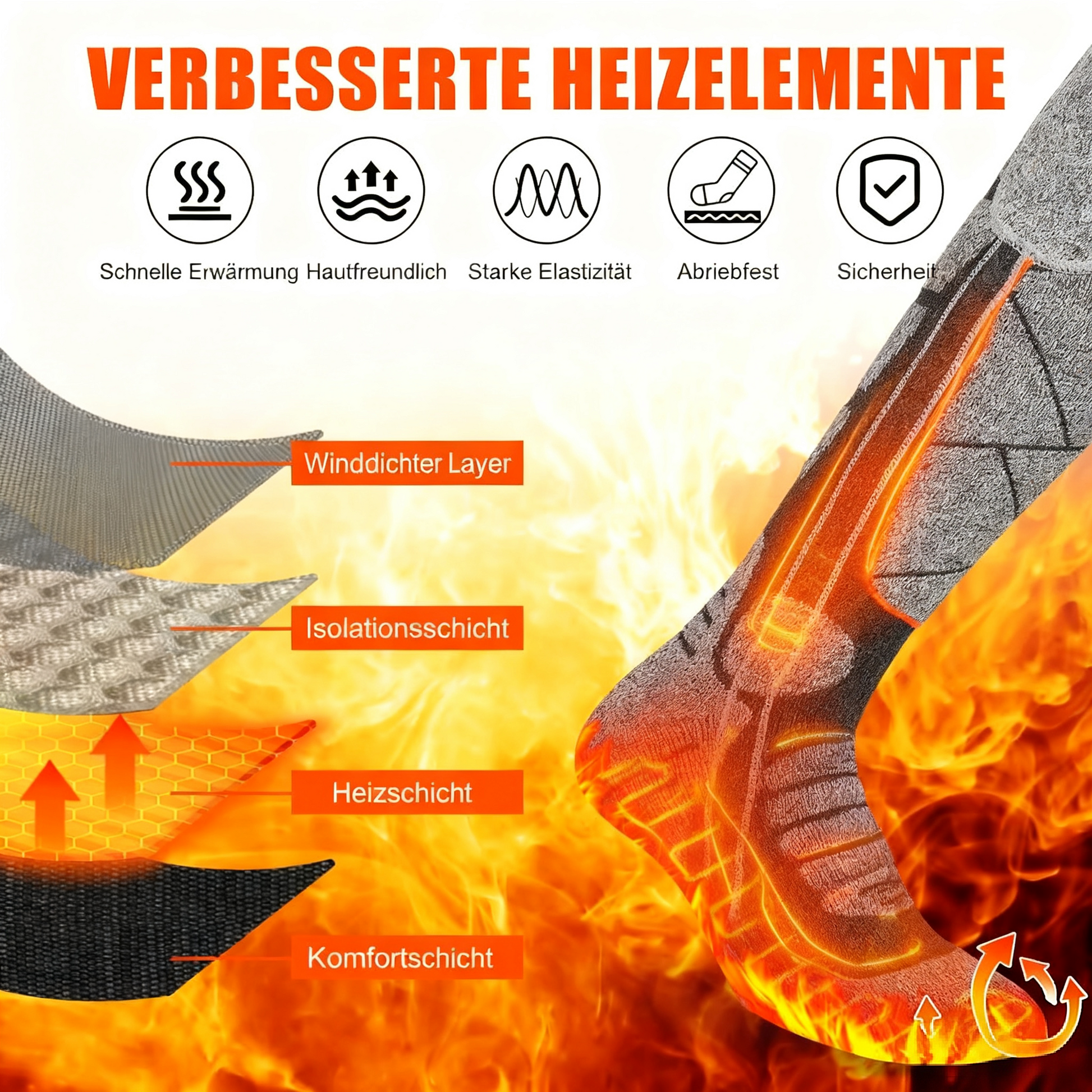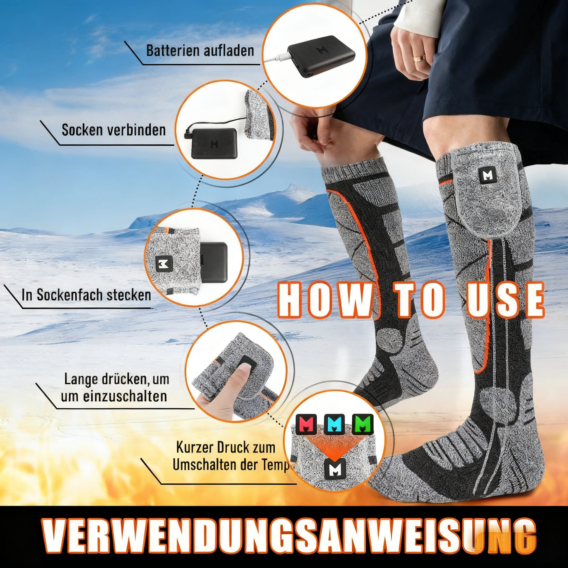 Erlebe ultimativen Komfort bei eisigen Temperaturen mit unseren wiederaufladbaren Heizsocken – perfekt für Ski, Wanderungen und Winterabenteuer. Keine kalten Füße mehr, nur anhaltende Wärme mit zwei 4000-mAh-Akkus.