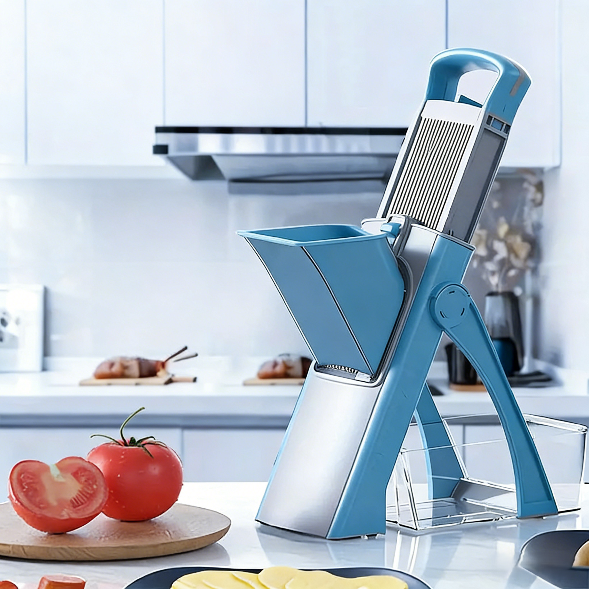 Der Gemüseschneider mit mehreren Klingen ist das perfekte Küchenwerkzeug für alle, die ihr Gemüse in verschiedene Formen und Größen schneiden möchten. Er ist einfach zu bedienen, schnell und macht Spaß! Sogar Pommes aus Kartoffeln oder Karotten lassen sich damit zubereiten. Und die Bedienung ist für jeden leicht!